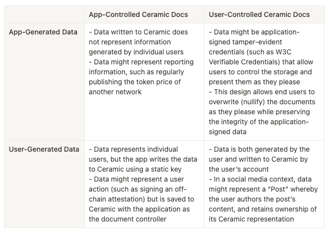 - Under the use case example referenced above, applications that issue data for their users to store typically don’t reference other data (for example, a relation to another Ceramic document) that can easily be changed—each data object is inherently